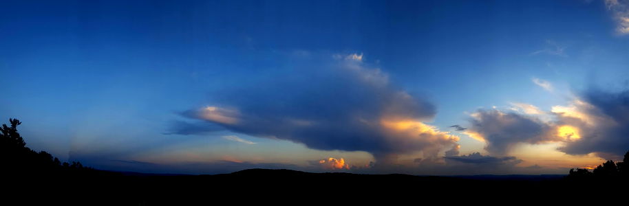 A tranquil scene with the colors of the sky reflecting on a peaceful lake, with gentle hills in the background. The sun is setting, and the clouds are tinted with warm hues.