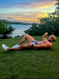 This image captures a moment of strength and dedication as Alejandro Acosta VIP, from Fort Lauderdale, demonstrates his fitness model physique. The image is rich in detail, highlighting the model's well-defined muscles, which are indicative of his commitment to his health and wellness.