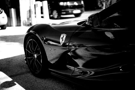 Ad Cubed, the renowned automotive photographer, captures a moment of tranquility amidst the hustle and bustle of a busy California street. In this scene, a sleek black sports car is parked under the watchful eyes of a gas station attendant.