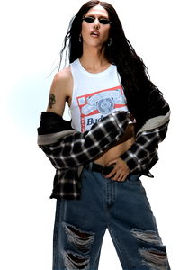 Adore Delano, a dynamic and captivating model from Los Angeles, CA. She is known for her confidence and striking style. In this image, she is exuding an air of nonchalance with her pose.