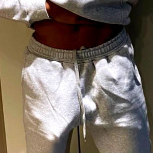 A stylish athlete modeling a casual sportswear ensemble in Seattle. Dressed in a comfortable grey tracksuit, the model exudes confidence and athletic prowess. His chiseled physique and vibrant personality make this image both visually striking and engaging.