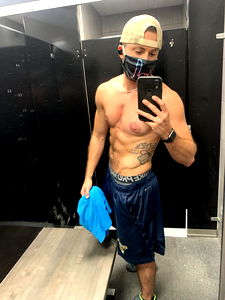 Aiden is seen capturing his progress in the gym. As a Florida native, he shares his passion for fitness and his dedication to staying in shape. His posture and commitment are evident as he poses with a towel around his neck.