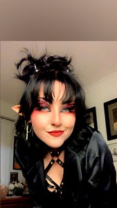 Emo style model Lily with dark hair showcasing her unique outfit and pose. Her onlyfans profile has a punk rocker look.