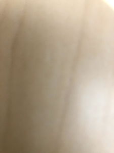 This is an image of a person in a mirror. The individual has a tanned skin tone and appears to be a woman with light-colored hair. She is wearing a top that covers the upper body, and it seems she is indoors as there is no outdoor scenery visible in the background.