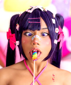 Akane Araragi, a popular OnlyFans model, seen playfully licking a candy lollipop. She is known for her sweet and alluring content. Her fans adore the way she engages in various activities that keep them entertained.