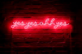 A vibrant and eye-catching pink sign proclaiming 'Yes, Why Yes' on a brick wall in an interior setting. A bold statement about positive affirmations or the affirmative response to any question. This is likely a part of a brand or design concept.