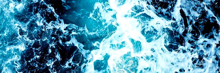 A dynamic, abstract image of ocean waves with a minimalist design. The dark blue and white color scheme creates an intense visual effect.
