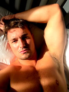 AlphaMatty, a fitness model and influencer, takes a moment to relax with his shirt off. 25 years old, muscular build, and an athletic physique are evident in this intimate photo.