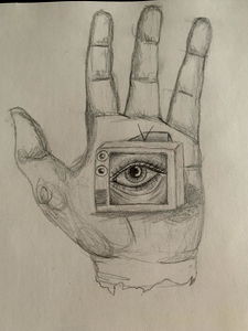 A young adult female with blue hair, glasses and a casual outfit sharing a selfie on social media.