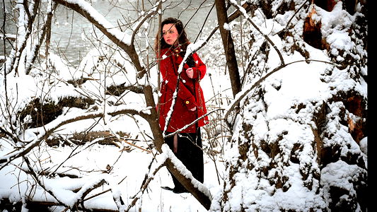 Amata Sage, a model from New England, USA, captures the magic of winter in this snow-covered photoshoot. Dressed in a red coat and lace bra, she exudes an air of elegance and confidence amidst the wintry landscape. The white snow contrasts beautifully with her attire, creating an ethereal and captivating scene.