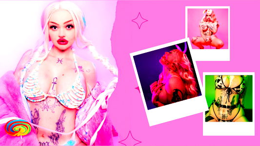 Ami Fae, the UK's leading adult model, is captured in this striking image. She showcases her unique style and allure as she commands attention with her mesmerizing gaze.