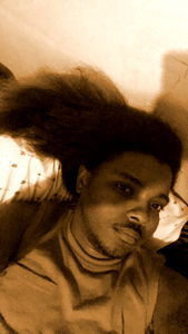 Amire1985 is a model from Philadelphia. He presents as a young male with an afro hairstyle and a beard. His relaxed posture suggests confidence and a laid-back style. In the image, he appears to be in a casual setting, possibly at home or during a photoshoot.