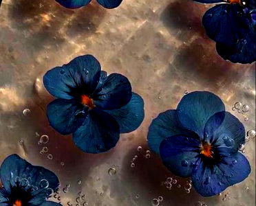 A captivating arrangement of blue flowers against a white background, possibly in water. The blooms exhibit a rich and intense color that stands out beautifully.