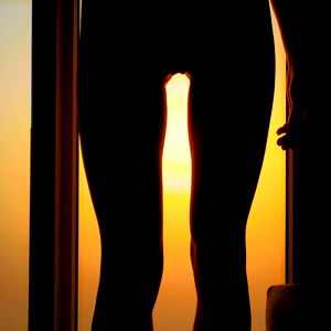 A captivating photograph featuring the Amours Mortes model, captured in a poignant silhouette during what appears to be sunrise or sunset. The contrast between the warm orange hues and the deep black tones creates an evocative scene. This image is a testament to the beauty of simplicity and the power of light.