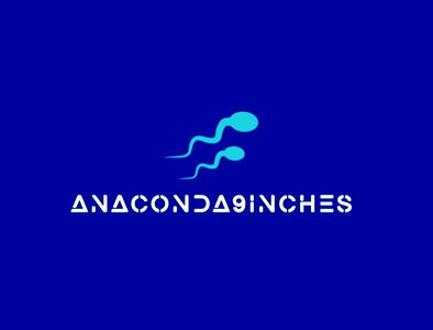 The image features a model photo of Anaconda9inches with a blue background and a stylized representation of sperm. In the bottom right corner, there is a watermark that reads 'ANACONDA9INCHES'. The style of the photograph appears to be designed for use in visual media or as part of an advertisement campaign.