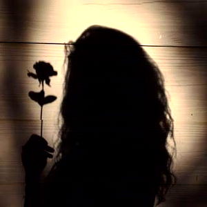 A poignant black and white image captures a moment of simplicity, as a person holds up a single flower against a contrasting background. The shadowy figure adds an air of mystery to the scene.