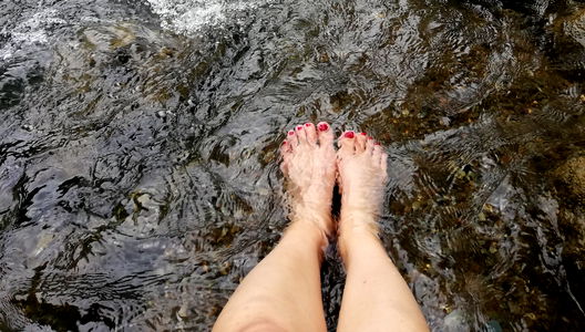Andre Goleman, a popular OnlyFans model, displays his feet in the image. The feet are adorned with red nail polish and appear to be resting on a surface. The overall atmosphere of the image is casual and relaxed.