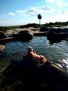 Stunning AngeLa poses in a bikini by the pool on a sunny day. With her hair styled and her sunshine glow, she's an emblem of summertime fun. Her unique style and confidence are evident as she flaunts her onlyfans persona.