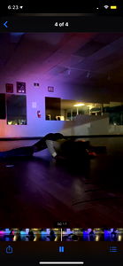 This is a screenshot from an Instagram post of Angel Face, featuring a model in a dance studio. The model appears to be performing or practicing a dance routine. The background of the photo shows a room with a hardwood floor, mirrors, and lighting equipment. There are no visible texts or brands in this image. This image seems to capture the professional side of modeling, as it showcases the model in action, likely during a work-related activity.