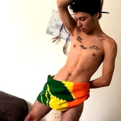 Model and fitness enthusiast, Angel Guitron from Corona, California. Known for his physique and athletic attire, he is often seen in vibrant swimwear. In this image, he captures the essence of a summer workout routine with his toned abs and colorful swim trunks.