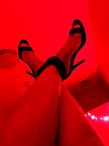 This image showcases a photoshoot featuring the OnlyFans model Angelica Lopez. The model is captured in an intimate and seductive pose, emphasizing her confidence and style. In this particular shot, she is wearing high-heeled shoes and black lingerie with a red fuzzy accessory that adds a touch of luxury and allure.