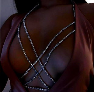 Anna Torres showcases her unique style in a captivating dress with cut-outs, adorned with diamond chains. The dress features multiple layers and a high slit on the right side, adding an element of mystery. Complementing the dress are large diamond earrings that catch the eye. Anna stands confidently against a neutral backdrop, exuding an air of sophistication.