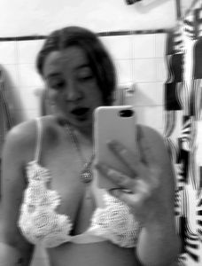 Antigona is a popular adult content creator on the platform OnlyFans. Known for her stunning and risque photoshoots, she's captured the attention of fans worldwide. In this image, Antigona is seen posing in a bathroom mirror wearing a lacy bra, her face obscured by a toothbrush. The focus is on her busty figure, accentuated by the transparent nature of the clothing and the close-up perspective of the photo.