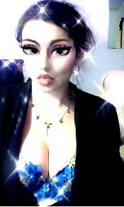 Apacherose, a popular US OnlyFans model, is seen wearing a lingerie and makeup. She appears to be posing for a selfie with glittery effects around her face. Her image has gained attention on social media platforms.