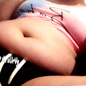 ArabTransFairy, a social media influencer, is seen in this image flaunting their plus size physique with confidence. The model is wearing a pink and blue sports bra and black shorts, paired with a white cropped hoodie. This photo emphasizes body positivity, celebrating the beauty of all body types.