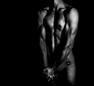 An athletic and muscular model showcasing a chiseled physique. A proud subfighter, Ares stands confidently with arms crossed, embodying strength and discipline.