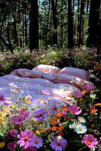 This image captures the enchanting Dolitia posed as if she's sleeping on a bed amidst a vibrant wildflower field. The natural beauty surrounding her adds to the dreamy and whimsical feel of the photo.