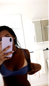 Basking in her bronzed glow, Esthefi captures her confidence and radiant skin with a mirror selfie. Her beach vacation is marked by a perfect tan and refreshing swimwear. OnlyFans subscribers get exclusive content of Esthefi's beauty routines and lifestyle tips.