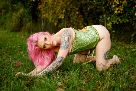 A beautiful and vibrant tattooed model, Bambi is a popular figure on OnlyFans. With her striking pink hair and captivating tattoos, she's sure to catch your attention.