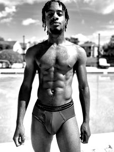 Bennoye is an OnlyFans model who exudes confidence. In this image, he's captured in a unique pose against a simple backdrop. His striking attire and pose make for an intriguing snapshot.