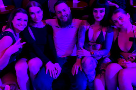 The image shows Bigdickrick posing with a group of people in a casual setting, likely at a nightclub or bar. The attendees appear to be enjoying themselves, with some individuals engaging in conversation while others pose for the camera. The atmosphere seems lively and fun.