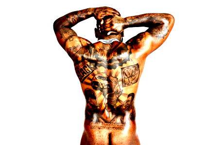 Renowned American OnlyFans model showcasing his full-body tattoo artistry.