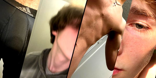 A shirtless individual in a bathroom, showing an abs workout. Onlyfans model.