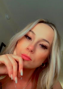 A young woman with blonde hair and blue eyes. She has a light complexion, fair skin, and is wearing light makeup. Her lips are a natural pink color, and her eyebrows are well-defined. Bobbie appears to be in her late teens or early twenties. She is holding up an index finger against her face, suggesting she may be posing for the camera.