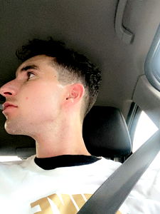 This is an image of a person who appears to be the OnlyFans model Brands. They are seated inside a car with a tattoo visible on their face. The person seems to be looking ahead, possibly engaged in a conversation or activity outside the frame. Their pose and expression convey a casual demeanor.