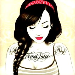 An artistic illustration capturing the essence of a popular model in her distinctive style, with textures that speak to her personality and individuality. She's showcasing her unique tattoo and looking directly at the viewer, inviting us into her world.