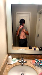 Onlyfans BWCblake is seen in a bathroom mirror, flexing his toned abs and displaying a well-defined physique. His confident posture adds to the overall aesthetic of this fitness-inspired photo.