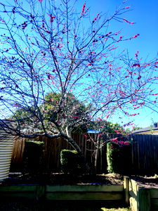 Immerse yourself in the serene ambiance of Cain's backyard. The highlight is a majestic tree adorned with blossoming pink flowers, standing tall amidst the verdant greenery. A wooden fence frames this picturesque scene, adding an element of rustic charm to the setting. In the distance, a building provides a sense of scale and context. Cain's backyard is a harmonious blend of natural beauty and man-made structures, making it an ideal retreat for relaxation and rejuvenation.