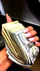 A photo of a person, identified as Candi, holding a significant amount of money in their hands while appearing to count it. The background is not distinctly featured, allowing focus on the interaction with the currency. Onlyfans account associated with this model.