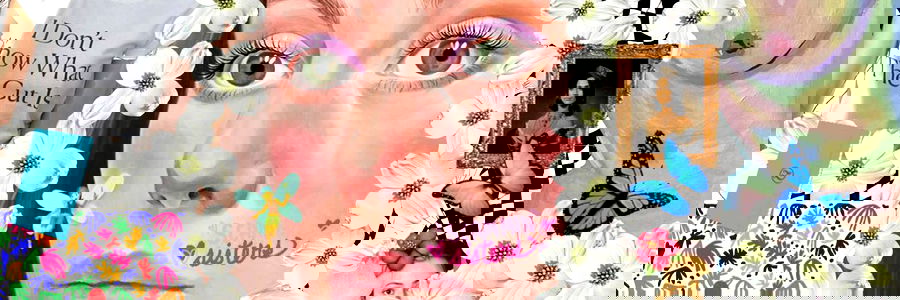Stylized and vibrant digital illustration featuring a headband adorned with flowers, set against an eye-catching backdrop. The artwork exudes a whimsical and artistic flair, reflecting the creativity and individuality of the subject. โฅโคCaroline Calloway is the central figure, evoking a sense of nostalgia and youthful energy.