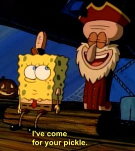 In this unique image, we see an animated character from the popular TV show 'Spongebob Squarepants' interacting with Tony Soprano from the critically acclaimed series 'The Sopranos'. They are both on set for a crossover episode. Spongebob, known for his cheerful demeanor and love of jellyfish, is seen here looking surprised at Tony's presence. Tony Soprano, famously portrayed by James Gandolfini, appears to be in character, possibly considering the implications of a 'Spongebob Squarepants' crossover on his own narrative. This image captures the essence of both series - one is known for its whimsical animation style, while the other delves into the complexities and moral ambiguities of organized crime in America.