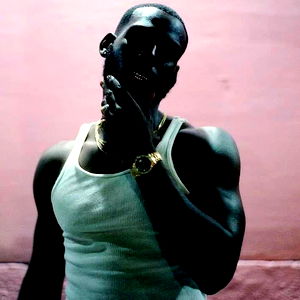 This image features a shirtless man with tattoos on his arm. He is standing with a casual yet fit appearance, dressed minimally in underwear, which accentuates his toned physique. His pose suggests a relaxed and confident demeanor. The background appears to be a plain wall, which places the focus entirely on him.