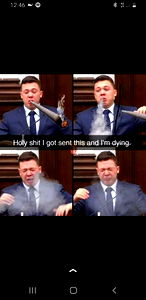 A humorous meme featuring a politician blowing smoke from a vape pen, with a caption that reads 'I got sent this and I'm dying',
