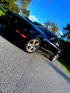 Destiny is a young adult model posing next to her car. She is wearing a black tank top and denim shorts. The background of the photo shows an open field under a clear sky.