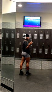 DiorxDick, the Fashion Model, poses confidently in a gym mirror. He is seen with a white paper and pen, perhaps planning his next photoshoot.