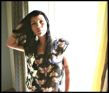 Hawaii model Dirtyjerz poses elegantly in a floral print dress with butterfly accents.